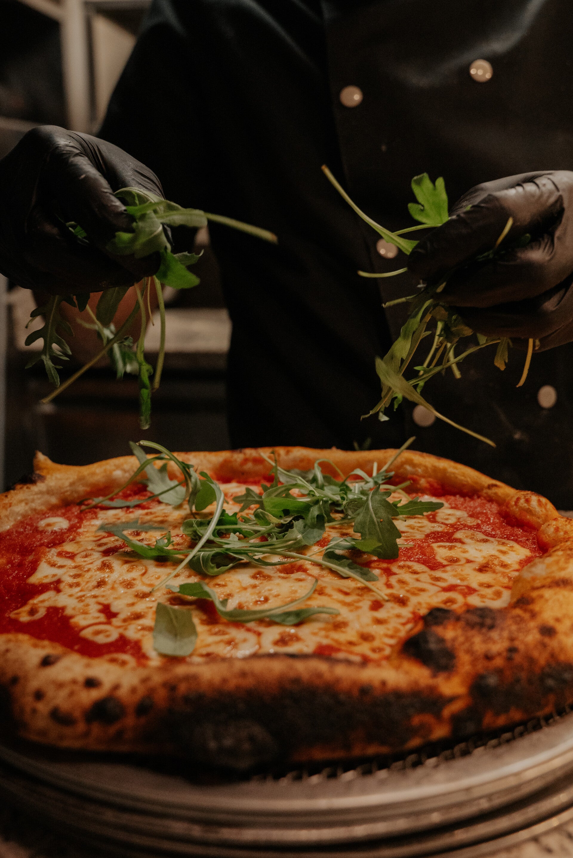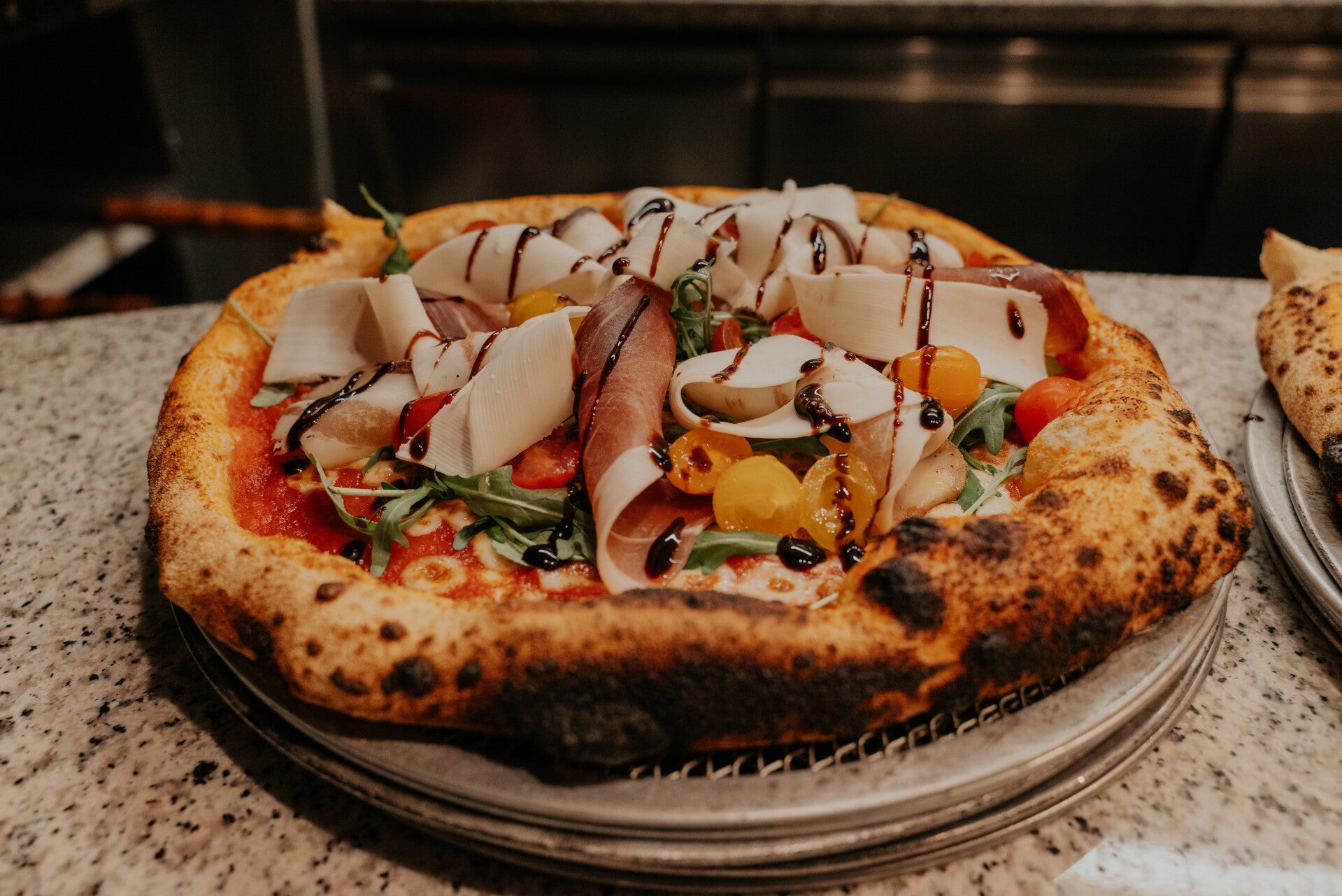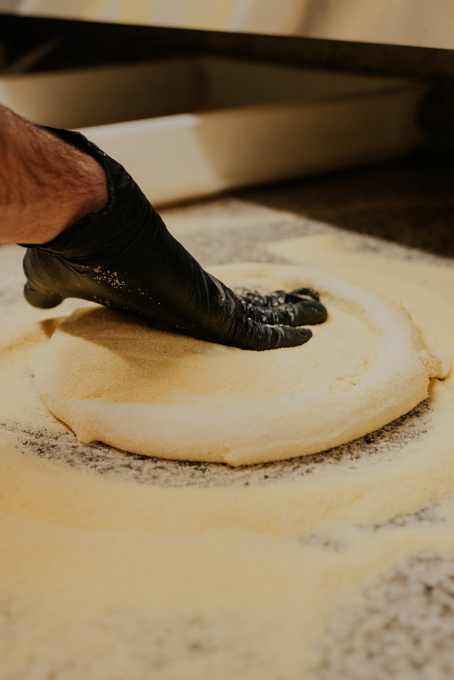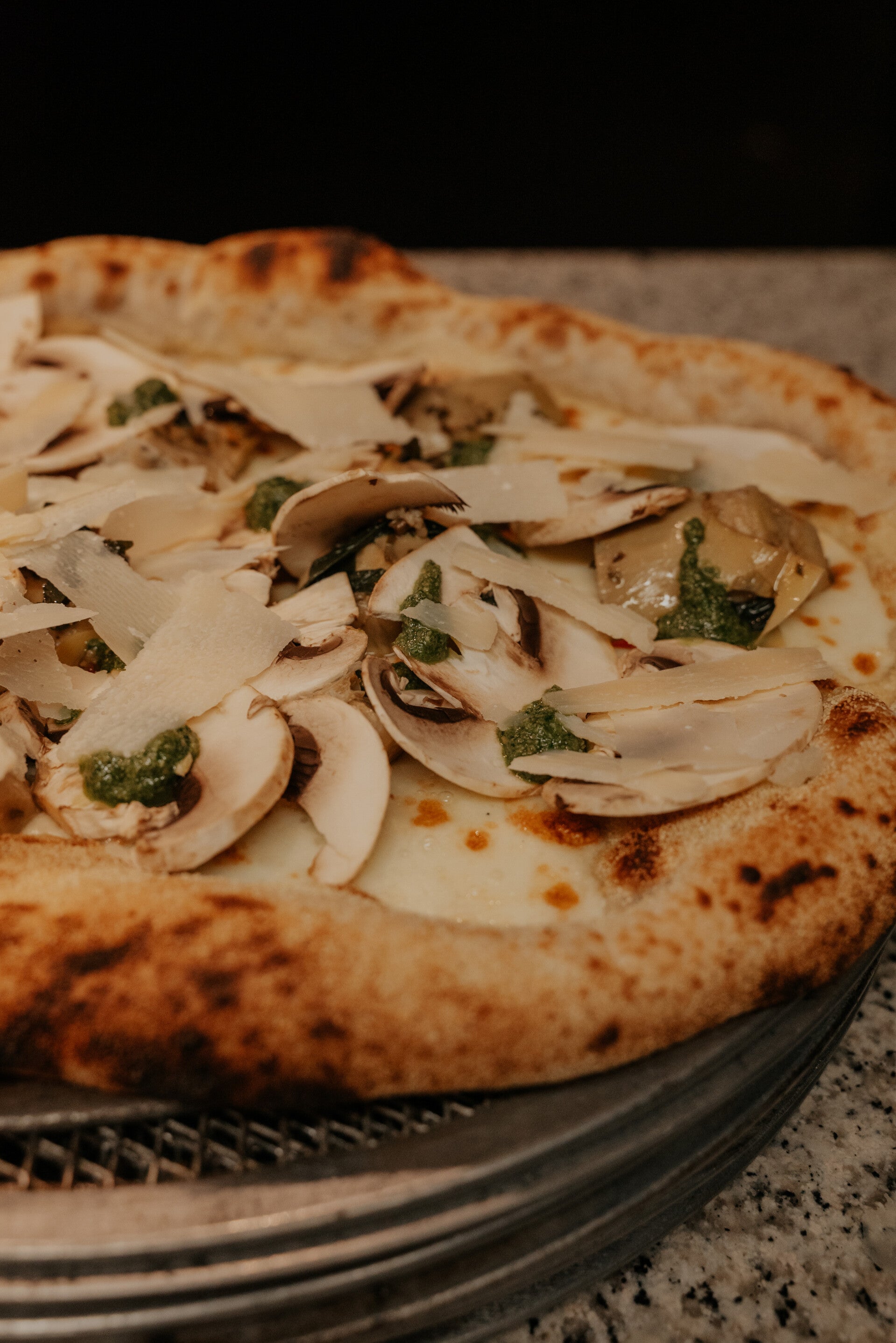 Notre spécialité : des pizzas napolitaines authentiques, cuites au feu de bois, avec une pâte travaillée dans le respect de la tradition. Hydratation poussée, fermentation lente de 48 heures à température contrôlée, cuisson ultra-rapide d’une minute à une minute dix… Tout est pensé pour offrir une pâte légère, alvéolée, et une corniche aérée comme à Naples.