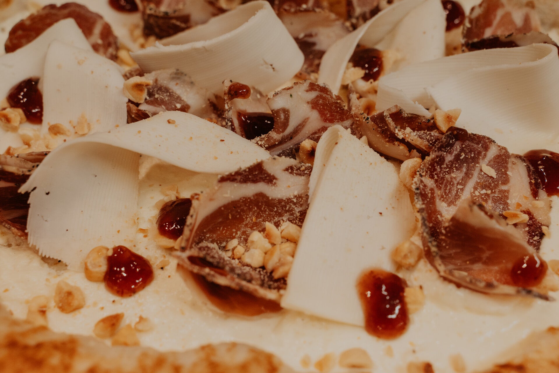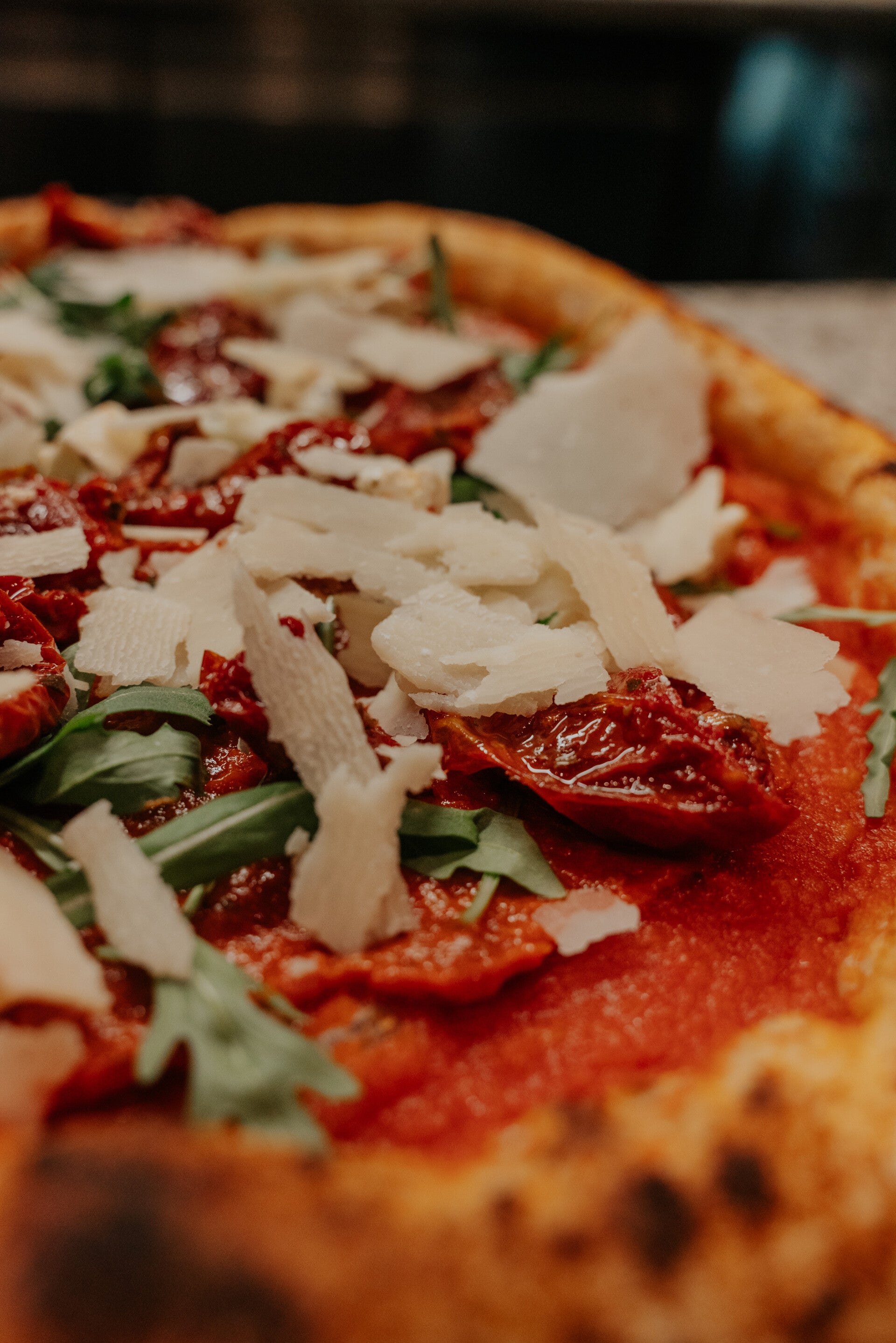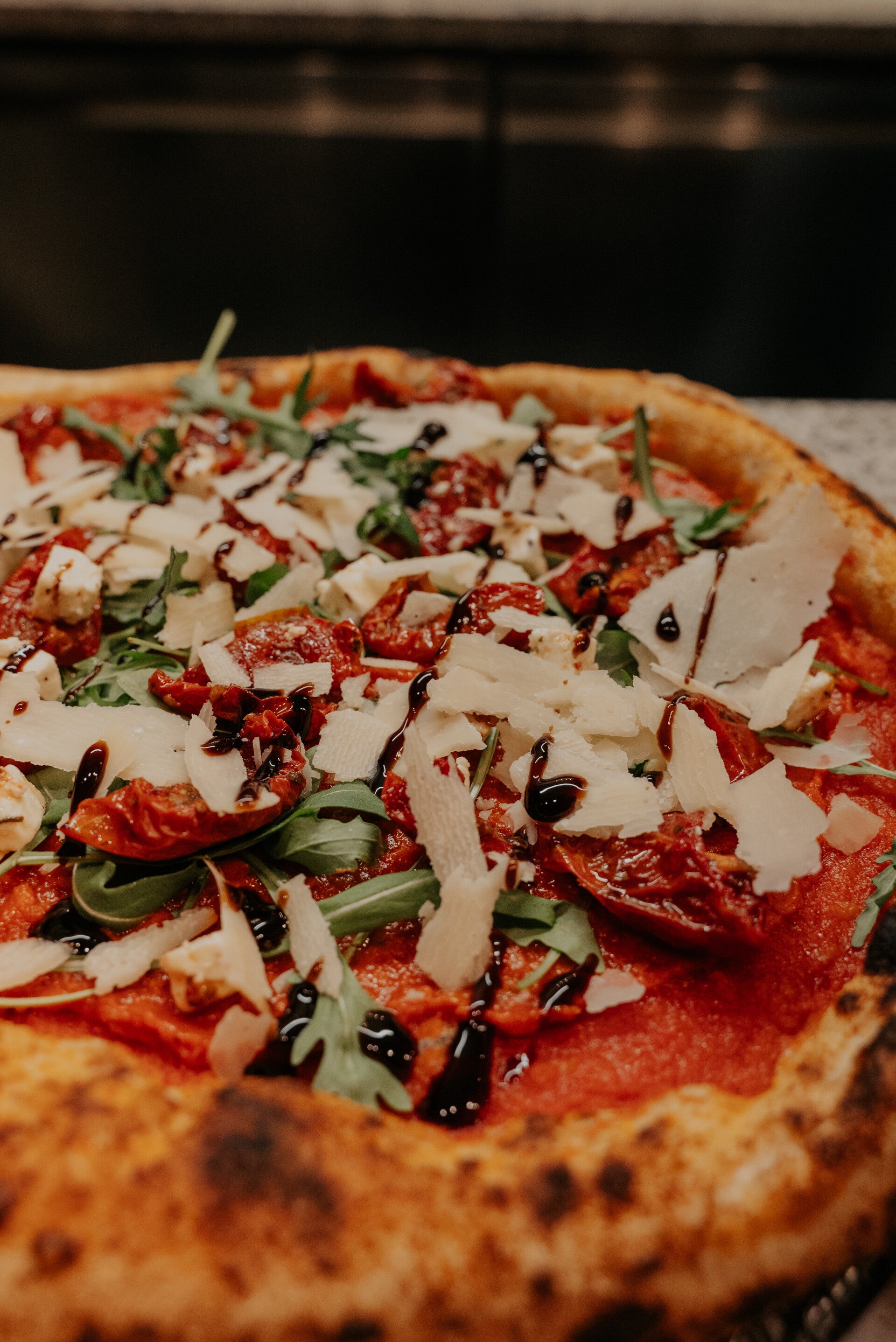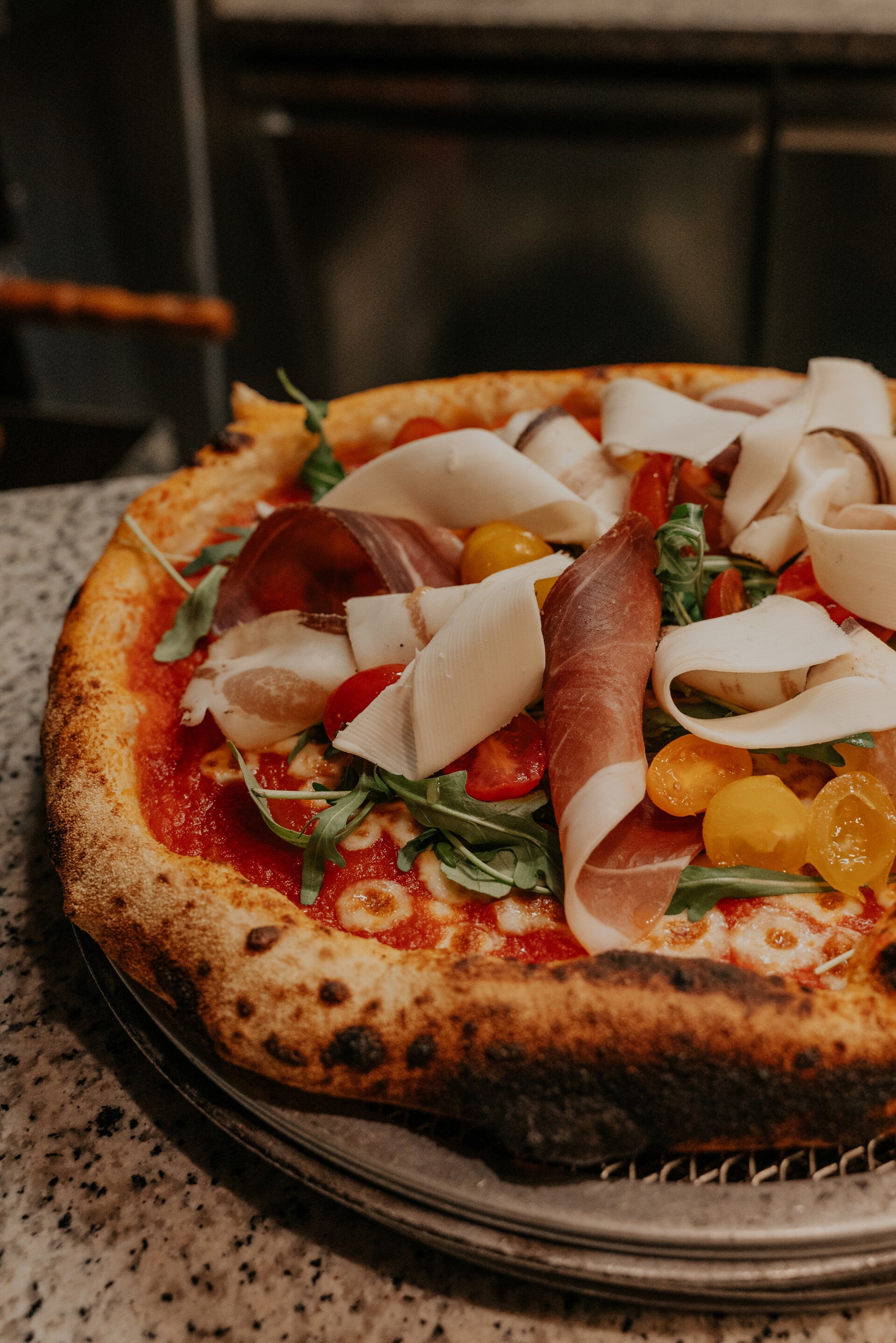 Notre spécialité : des pizzas napolitaines authentiques, cuites au feu de bois, avec une pâte travaillée dans le respect de la tradition. Hydratation poussée, fermentation lente de 48 heures à température contrôlée, cuisson ultra-rapide d’une minute à une minute dix… Tout est pensé pour offrir une pâte légère, alvéolée, et une corniche aérée comme à Naples.